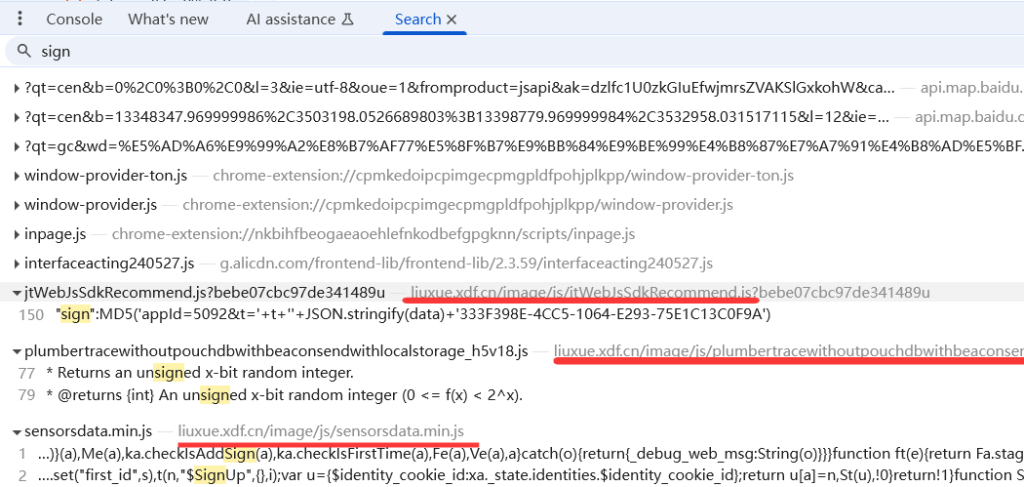 全局搜索sign,只有三个站内js有涉及,全部点开。