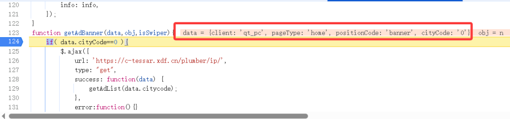 往上翻找到了data是调用function getAdBanner(data,obj,isSwiper){}这个方法传过来的。